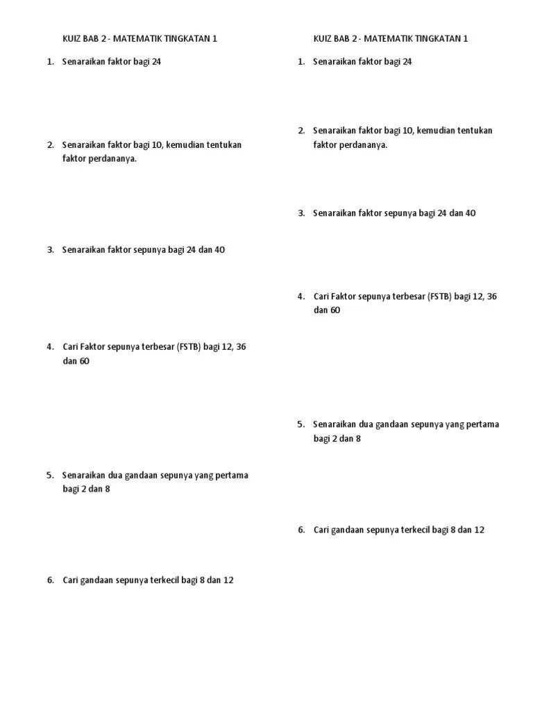 Kuiz Matematik Tingkatan 1 / Kuiz Matematik Bertulis Tahun 4 Sk. Kuiz wordwall kemerdekaan 2021 smkts kuiz … Selain nota, pandai menyediakan kuiz dan ujian mengikut topik. Malaysia's best online learning resource for spm, pt3, upsr, lower primary, and english. → spm 2022, tingkatan 5:
